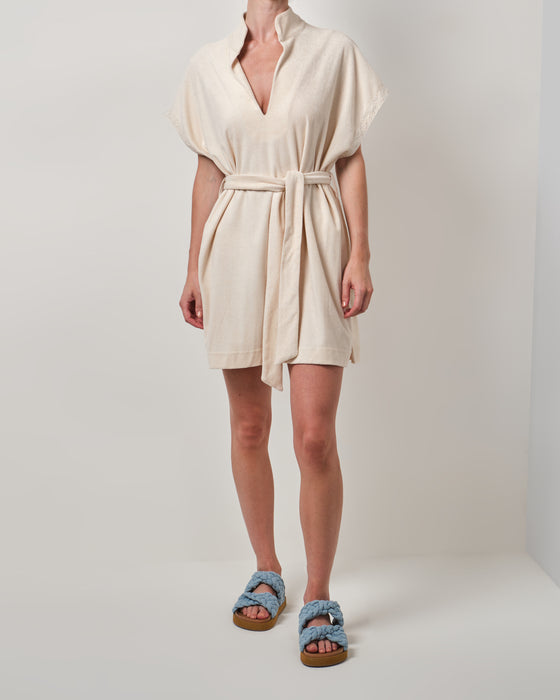 Introducing the Havana Dress, a playful ode to laid-back summer vibes. Crafted from soft terry toweling fabric, this short dress features a flattering V neckline and a chic belt to accentuate your waist. Whether you're lounging by the pool or exploring beachside cafes, the Havana Dress effortlessly combines comfort and style for a look that's both relaxed and refined.