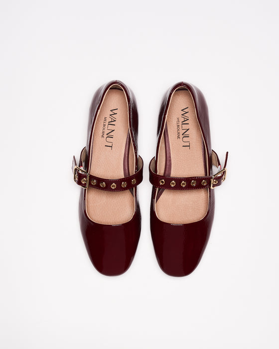 The Bianca Leather Ballet flat offers a refined take on a classic silhouette. Made from glossy patent leather, this elegant flat features a dainty strap with a gold buckle for a touch of sophistication. Its low profile and cushioned footbed ensure comfort, making it perfect for both casual and dressy occasions.