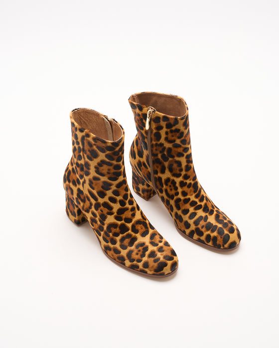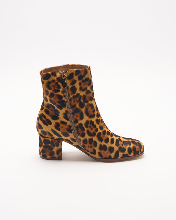 The Luna Leather Boot combines style and comfort with its bold design options and elegant construction. Available in a striking tan leopard print or a more classic tan suede, these boots feature a sleek, mid-height block heel and a convenient side zipper for easy wear. The soft suede or leather upper, depending on your choice, adds a touch of luxury, making them perfect for both casual and more polished looks. Whether you're looking to add a pop of pattern to your wardrobe or keep it subtle with solid suede, the Luna Boot is your go-to for chic, everyday footwear.