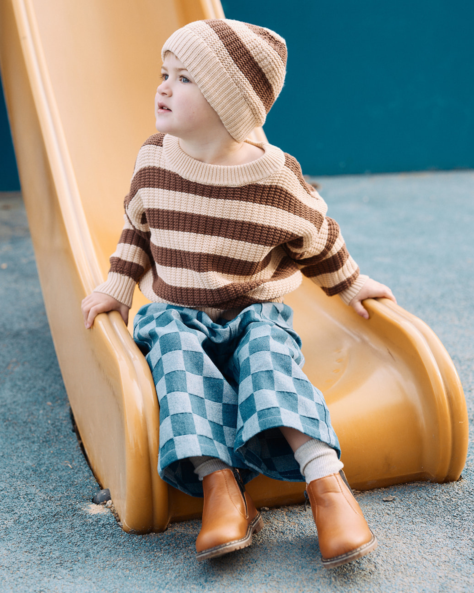 The Remy Jean offers a fun twist on classic denim with its adorable heart print. These relaxed-fit jeans are made from soft and durable denim, perfect for all-day play and comfort. Featuring an elastic waistband, they’re easy to pull on and off, making them both stylish and practical. The large front pockets add a playful touch while offering space for little treasures. Whether paired with a casual tee or a cute top, the Remy Jean is a versatile choice for any adventure.