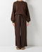 The Stockholm Pant is the epitome of effortless elegance, designed with a relaxed, wide-leg silhouette for both comfort and style. Featuring an elasticated waist with a drawstring, these pants offer a perfect fit without compromising on ease. Available in classic tones like "Black" and "Chocolate," the Stockholm Pant is versatile enough to pair with any top, whether you're dressing up for an event or keeping it casual. The fluid drape and minimalist design make this pant a timeless staple for any wardrobe.