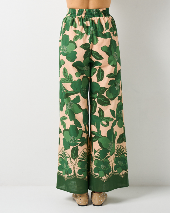The Vermont Pant is a statement piece, designed to offer both comfort and flair. Featuring a high-waisted, wide-leg silhouette, these pants provide a relaxed fit that moves effortlessly with you. The elasticated waistband adds comfort and ease, while the eye-catching prints, such as "Jaguar Jungle," "Peony Patchwork," and "The Aviary," bring a bold touch to any outfit. Perfect for both lounging and casual outings, the Vermont Pant can be paired with simple tops or coordinated with matching prints for a striking, cohesive look.